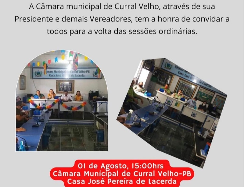 Nesta segunda-feira, dia 1º de Agosto, a câmara municipal de Curral Velho dará início ao segundo período legislativo do ano de 2022 com o retorno das sessões ordinárias após o período de recesso parlamentar de meio de ano.